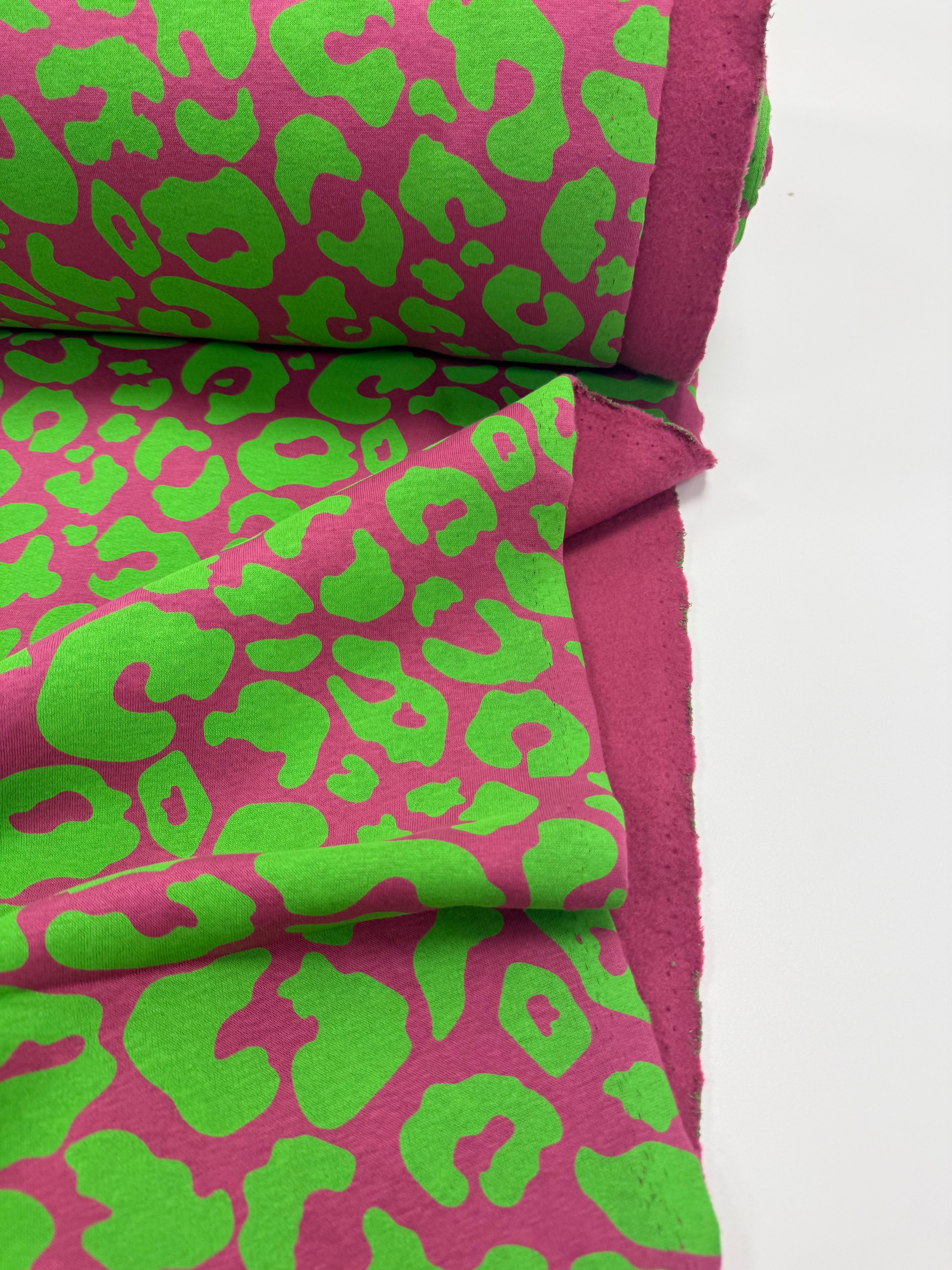Introducing The Heavy Leo Collection — a bold, colour-driven lineup of double-face sweatshirtings that blend playful pattern with irresistible comfort. Crafted from a beautifully soft 80% cotton, 20% polyester blend, each colourway features an abstract, leopard-inspired design on the smooth outer face and a plush, fleecy reverse for warmth and cosiness.