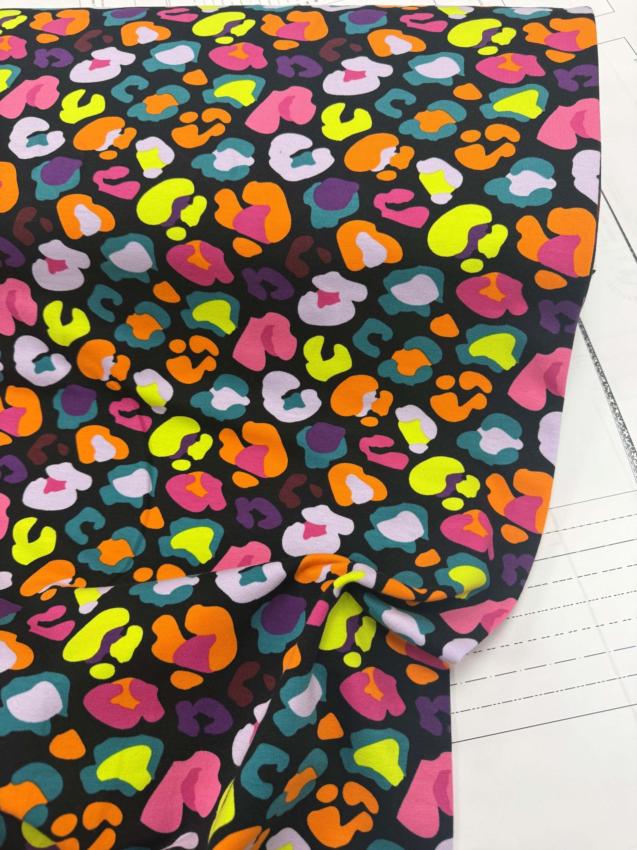 With its abstract, animal-inspired spots scattered across the fabric in vibrant pops of neon and rich colour, this design feels wild in the best possible way ,fun, energetic and completely unapologetic. Each colourway brings its own mood, from bright and punchy to deeper, more dramatic tones, but all share that signature joyful chaos.