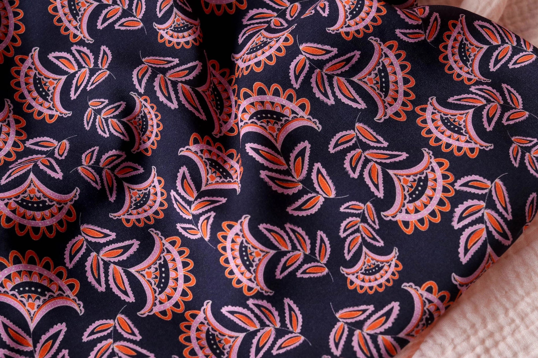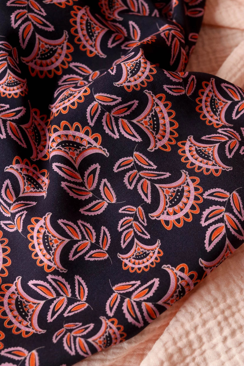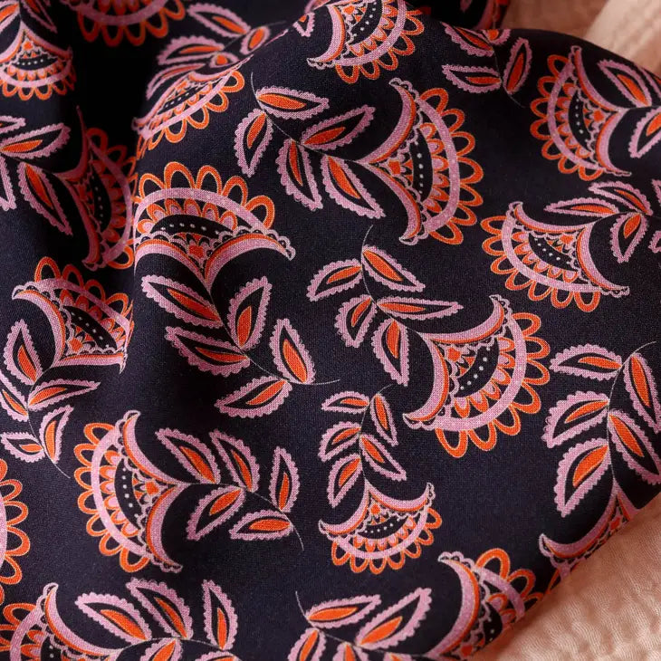 Very pretty viscose fabric printed with our exclusive PASHMINA WINTER pattern. Soft and fluid, this fabric will be perfect for making pretty dresses, blouses, skirts or blouses.