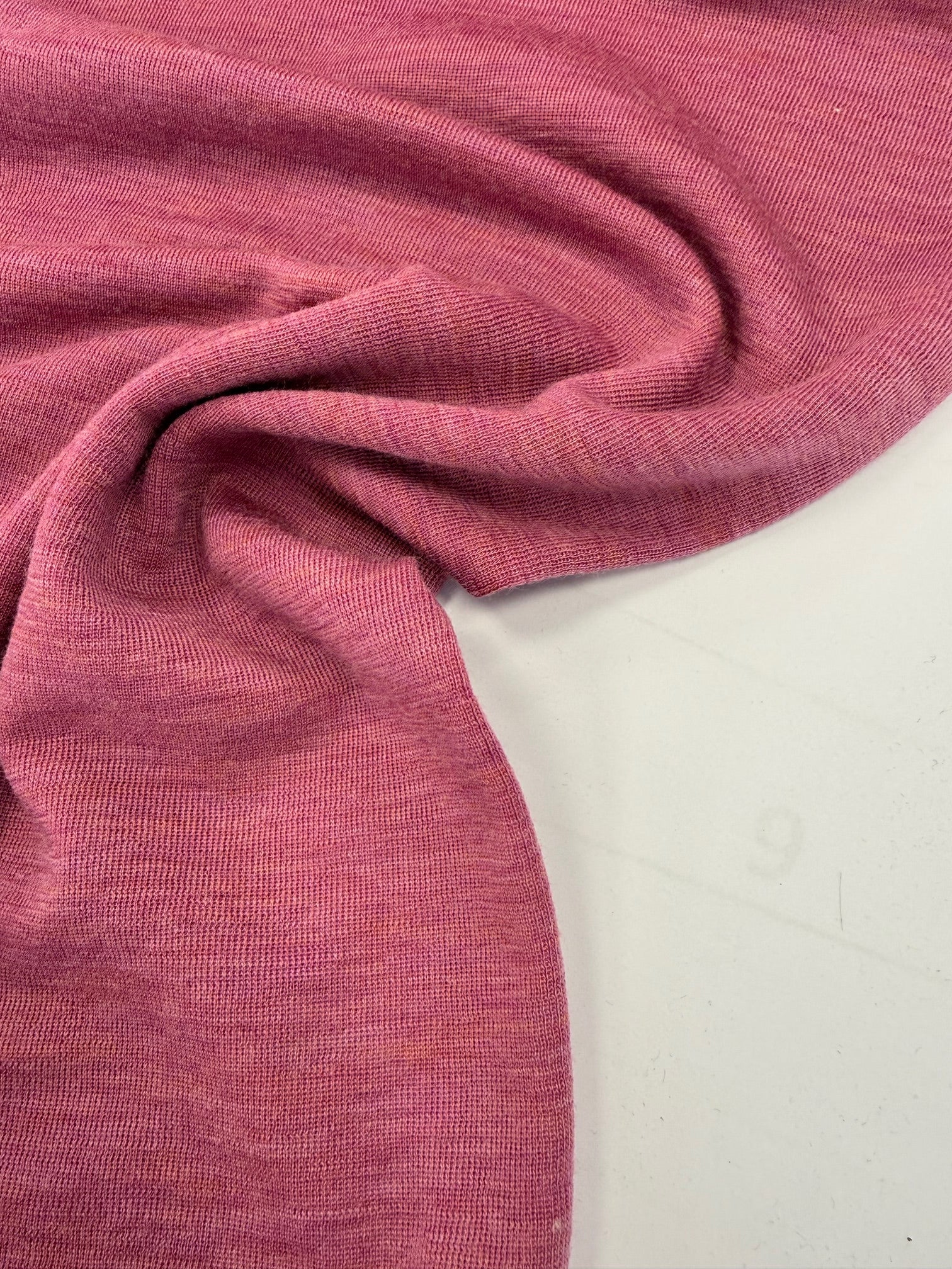 Luxurious, breathable, and naturally stretchy — this 100% merino wool knit is a dream fabric for cool-weather dressing. With no added elastane, the stretch and recovery come entirely from the clever structure of the knit, giving it beautiful drape and comfort while maintaining its natural feel.