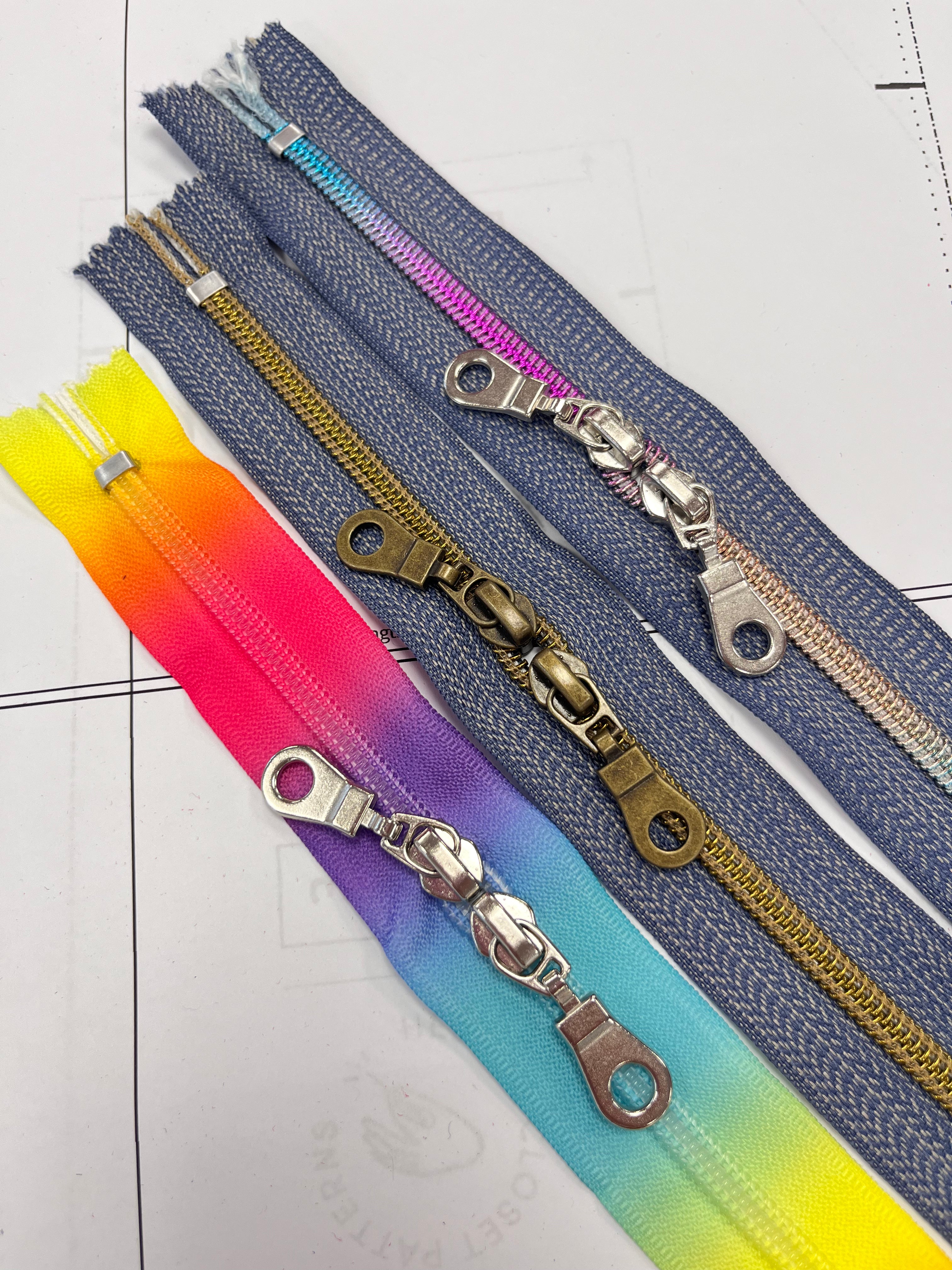 These 2 way zips are super high quality. The zips are closed at both ends and have two metal sliders making it possible to open the zip from the middle towards both ends.. The zipper teeth are nylon.