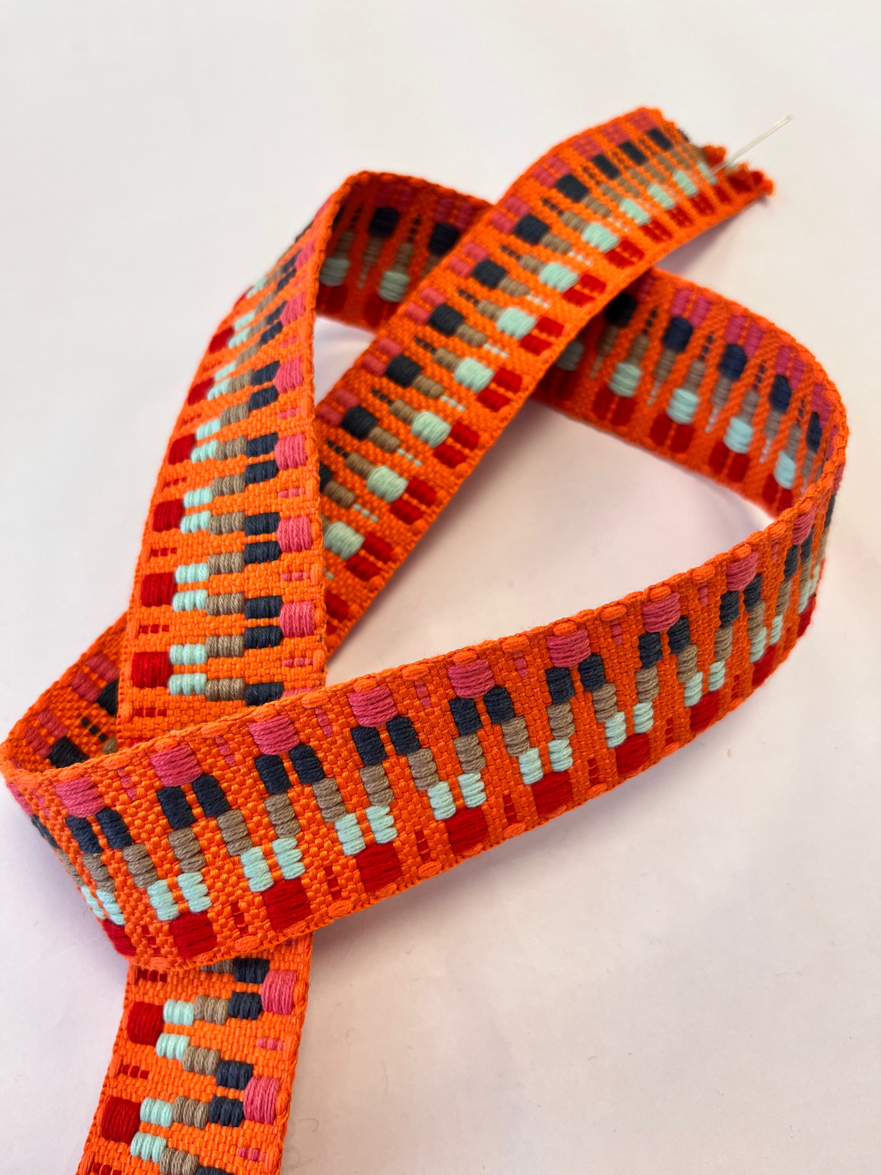 38mm Cotton Webbing | ZigZag | Orange/Turq/Navy