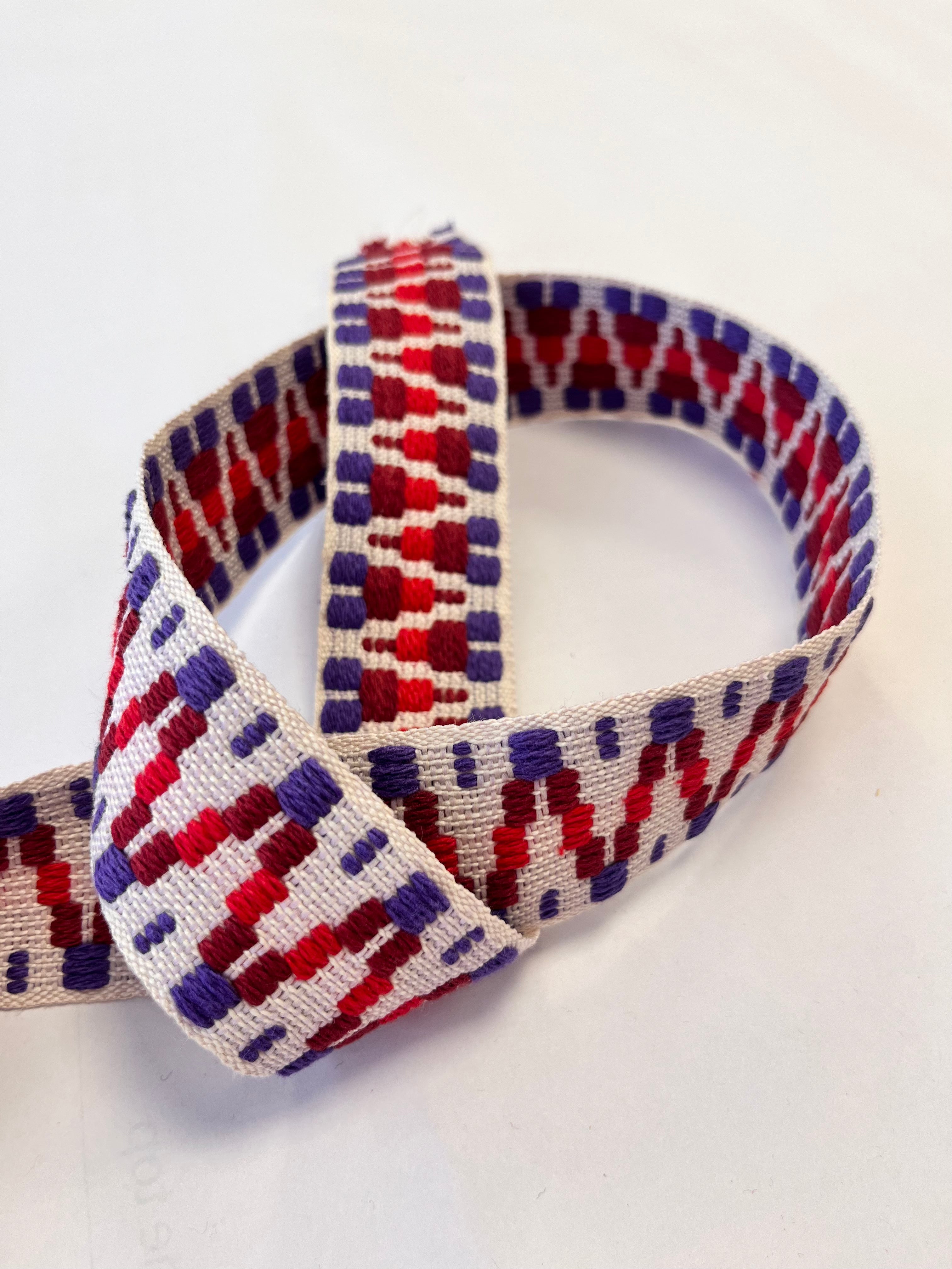 38mm Cotton Webbing | ZigZag | Purple/Red/Neutrals