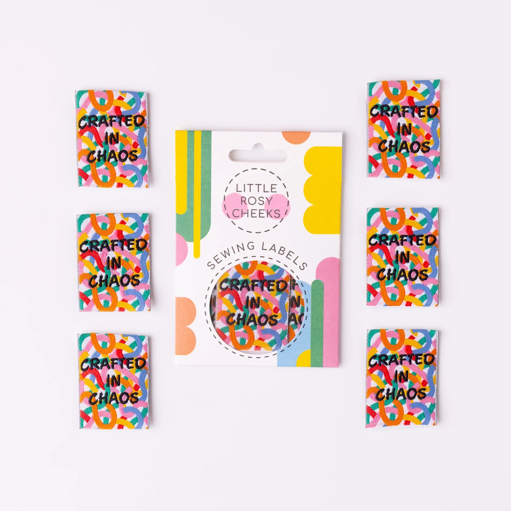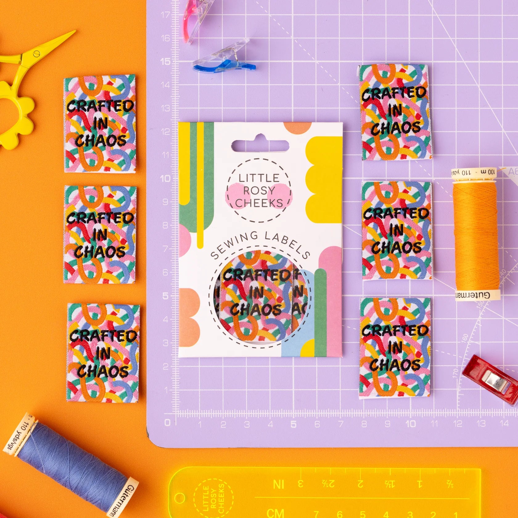 'CRAFTED IN CHAOS' - Little Rosy Cheeks UK Pack of 4 sewing labels