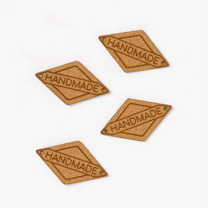 'HANDMADE VEGAN SUEDE' - Little Rosy Cheeks UK - Pack of 4 sewing labels