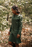 VIPÈRE is one of those garments that slips on like a second skin, and in which you feel ready to conquer the world! Available in both jumpsuit trouser and dress versions, VIPÈRE has a highly constructed line, and Fauve details leave their mark on the silhouette: signature pocket and clip work, a scoop neckline, and shoulders beautifully highlighted by buttoned tabs that embellish it like jewels. With its supple gait and proud look, nothing will stop you in VIPERE...