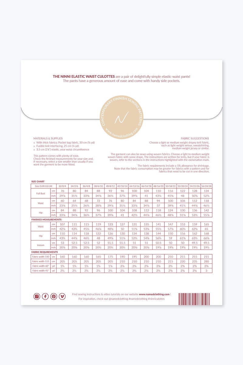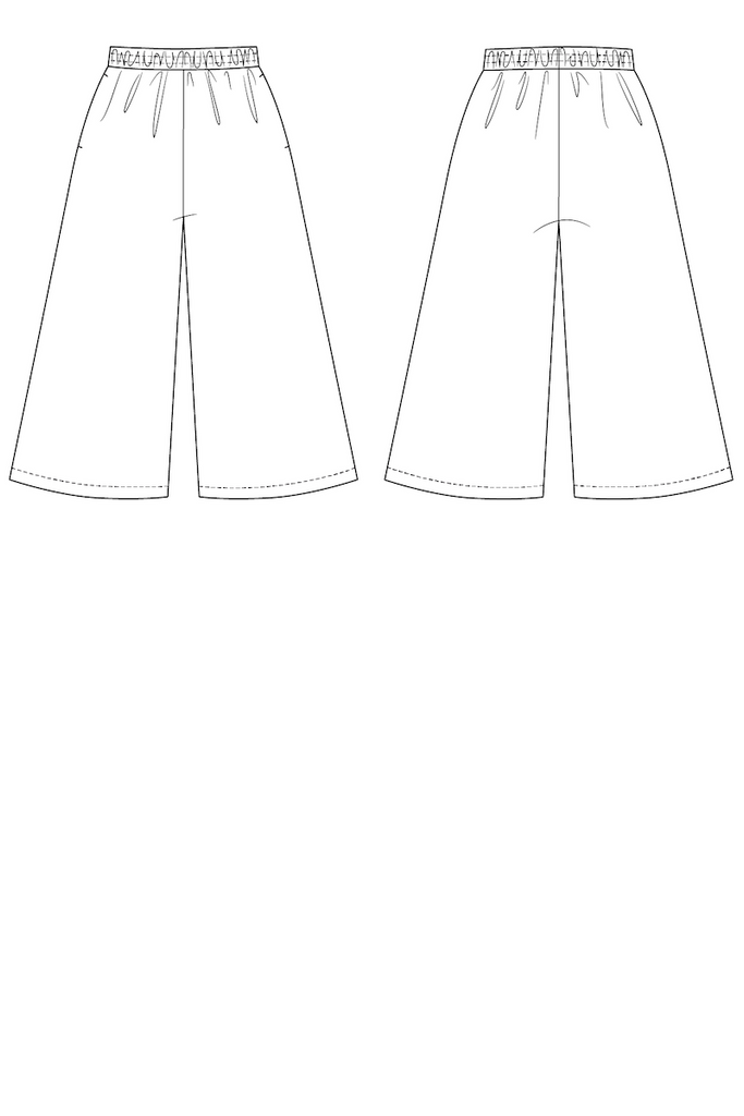 The Ninni culottes are a pair of delightfully simple elastic-waist pants! The pants have a generous amount of ease and come with handy side pockets.