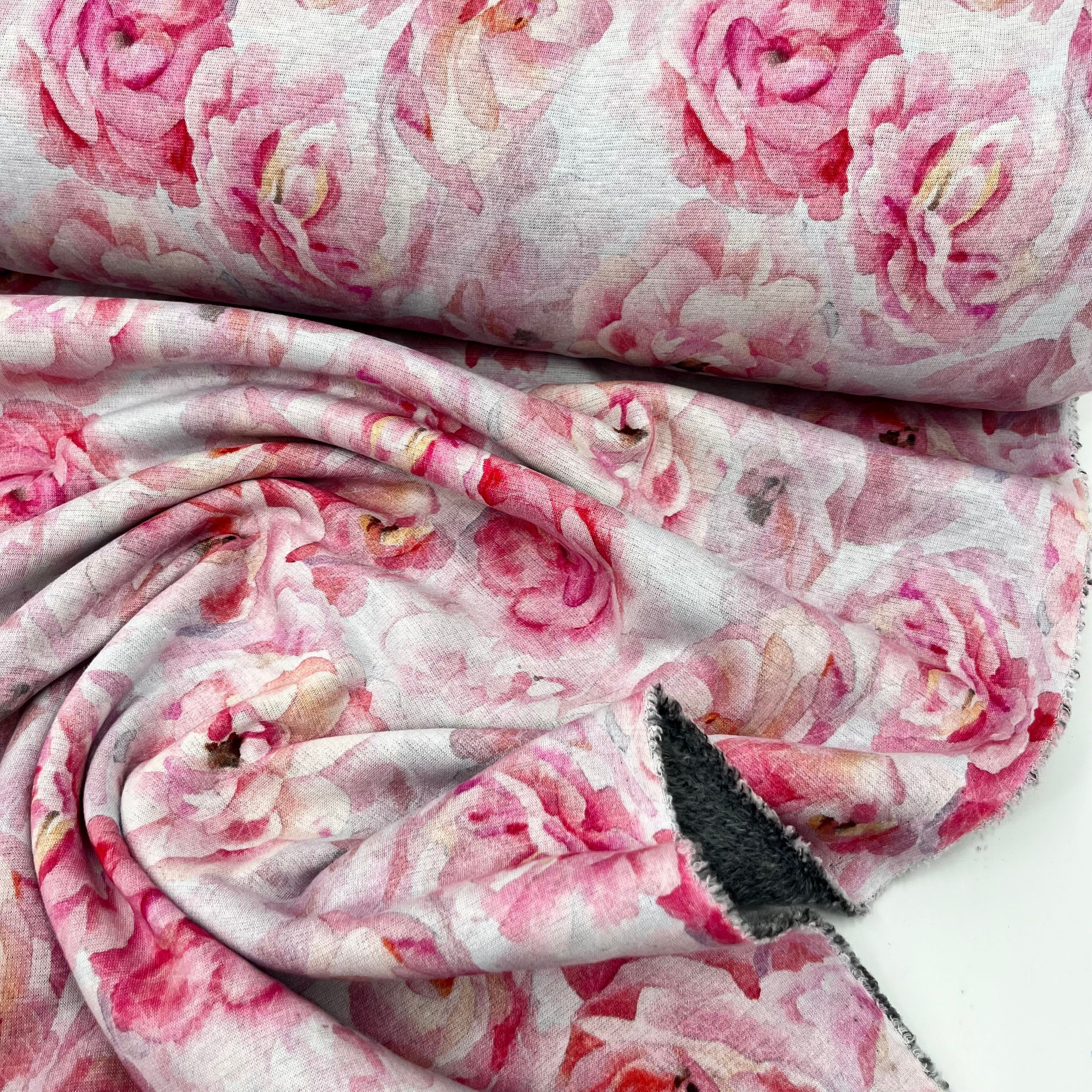 REMNANT | Antique Roses- Purring Fur Sweatshirting-Pink .6Mtr