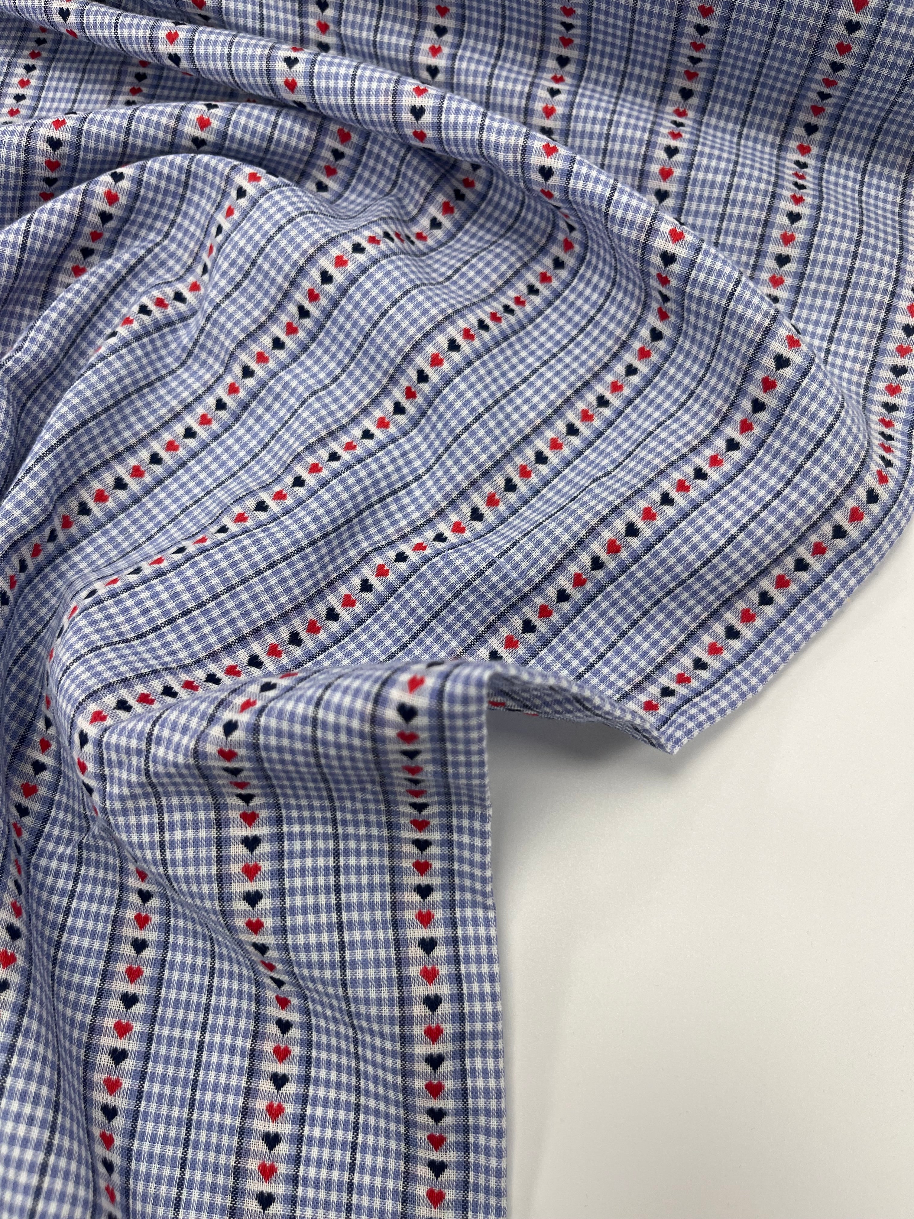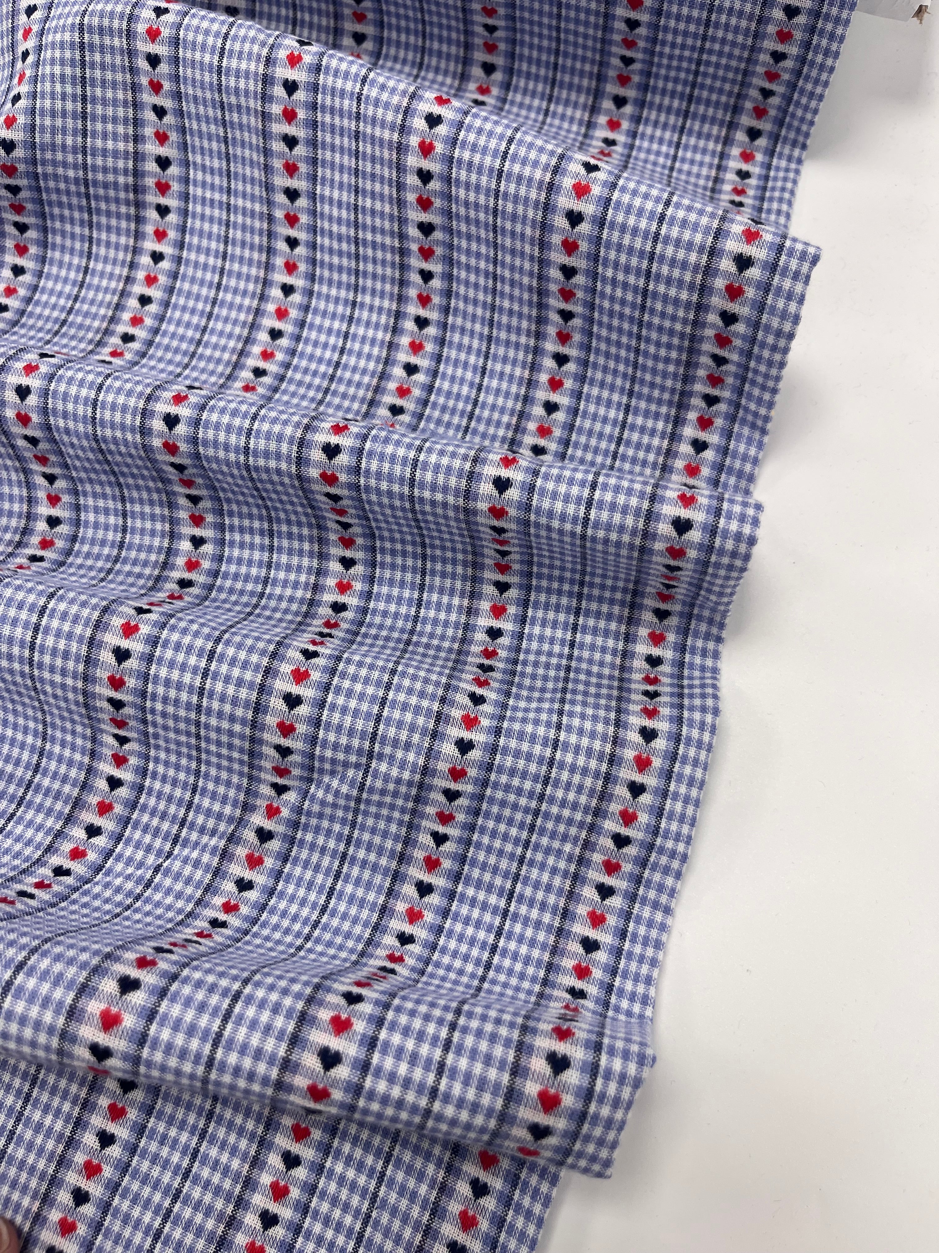 REMNANT | Cotton Jacquard Hearts | Blue 2.3MTR