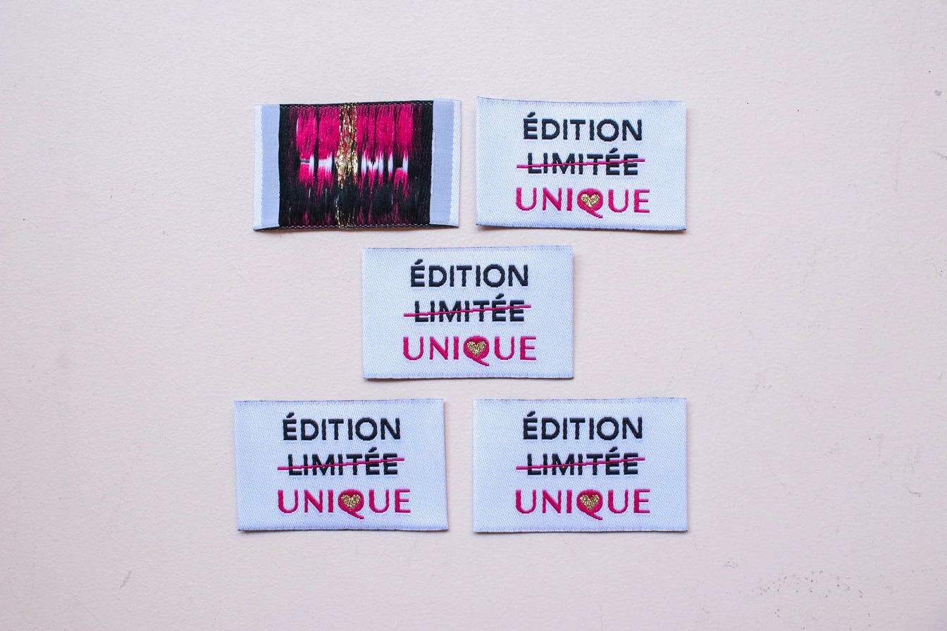 Set of 5 sewing tags Perfect for customizing all outfits and accessories, we have developed adorable little woven labels to sew on