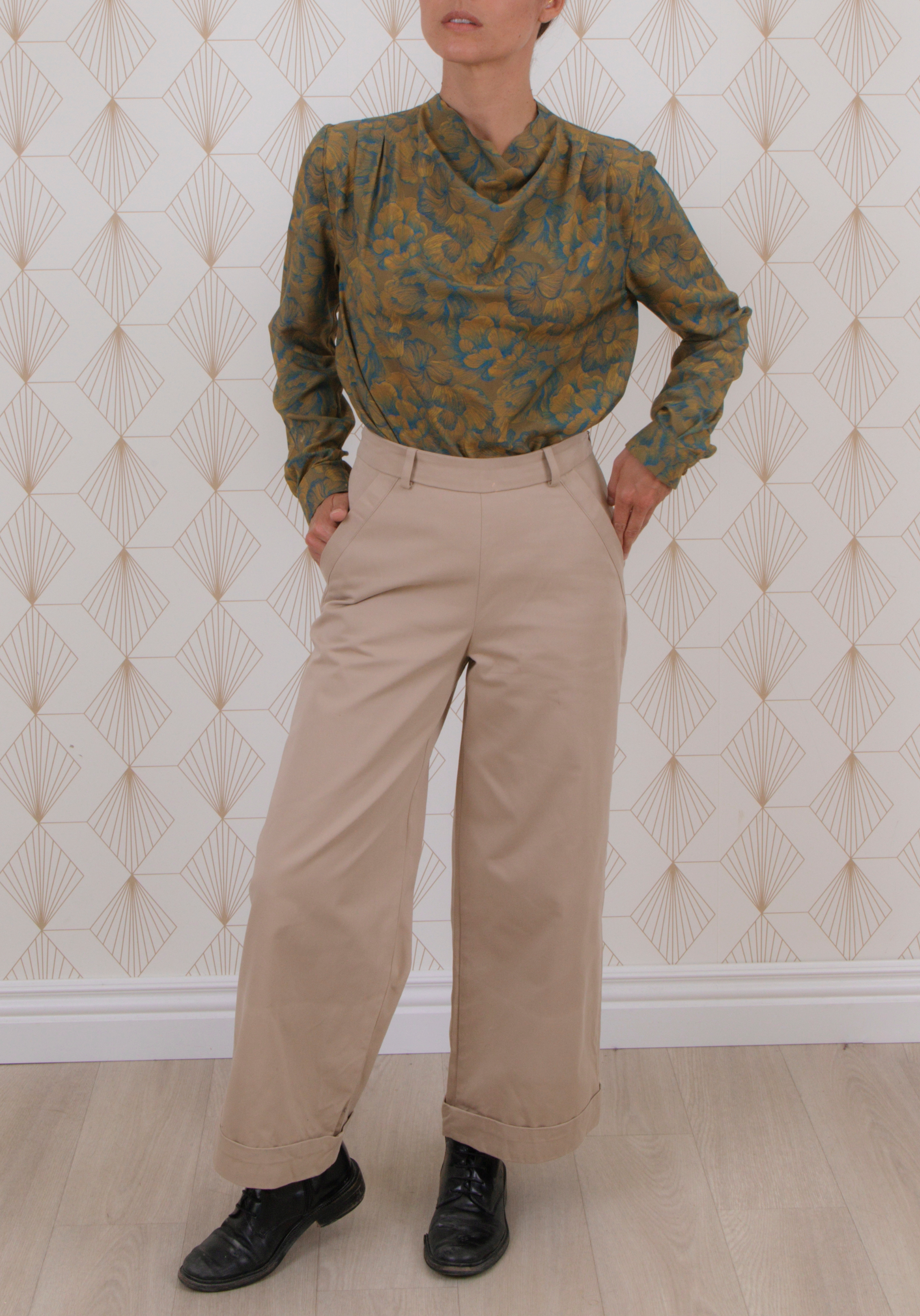 Sewing level: intermediate, the technical aspects are the assembly of invisible fly, the italian pockets, the assembly of the belt, and the cuff at the bottom of the legs.