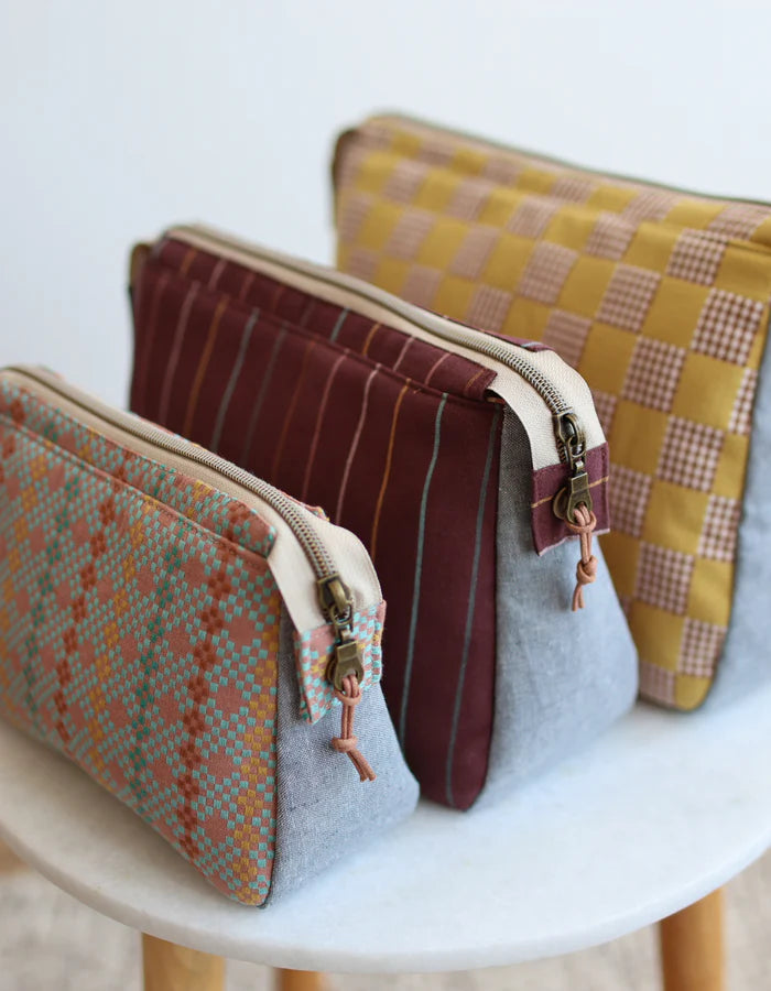 A fun zippered pouch you’re sure to love to make and use! Three sizes to sew! All sizes have an interior dividable mesh pocket that is perfect for keeping everything organized. Medium and Large sizes include an interior zippered pocket.