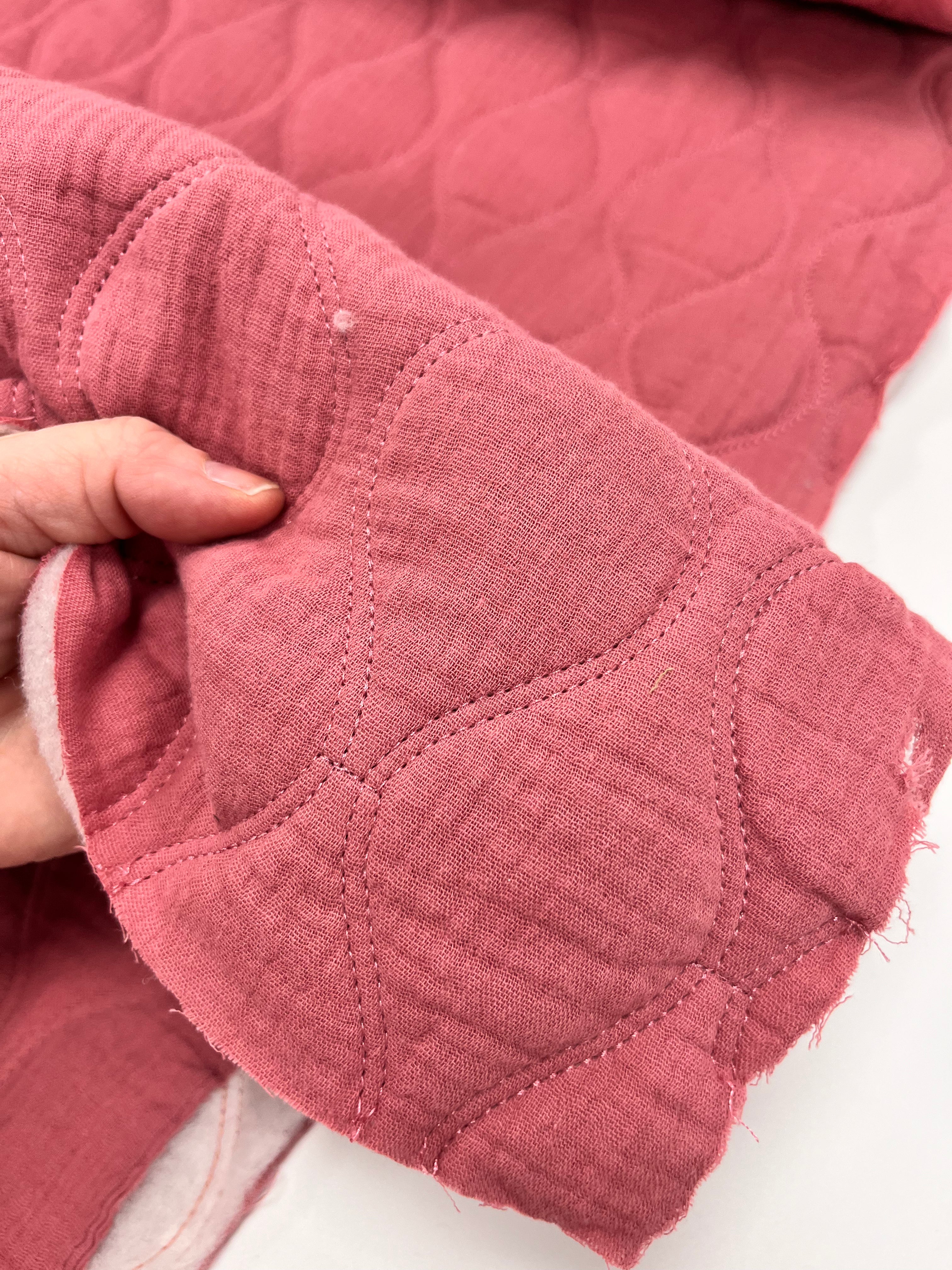 This beautiful quilted double gauze is double sided with the same fabric on both sides so there is no need to line it . It would be fab in a gilet  or jacket with a bias bound edge.
