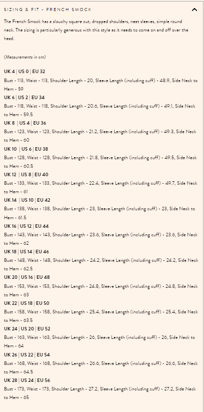 Bust / Waist / Hip (based on standard UK measurements) - Measurements in cms
