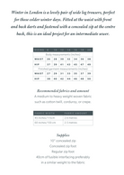 If you are using 45” (115 cm) wide fabric you will need 2.6 metres. If you are using 60” (150 cm) wide fabric you will need 2.5 metres. Winter in London will work with medium to heavy weight woven fabric such as cotton twill, corduroy or crepe.